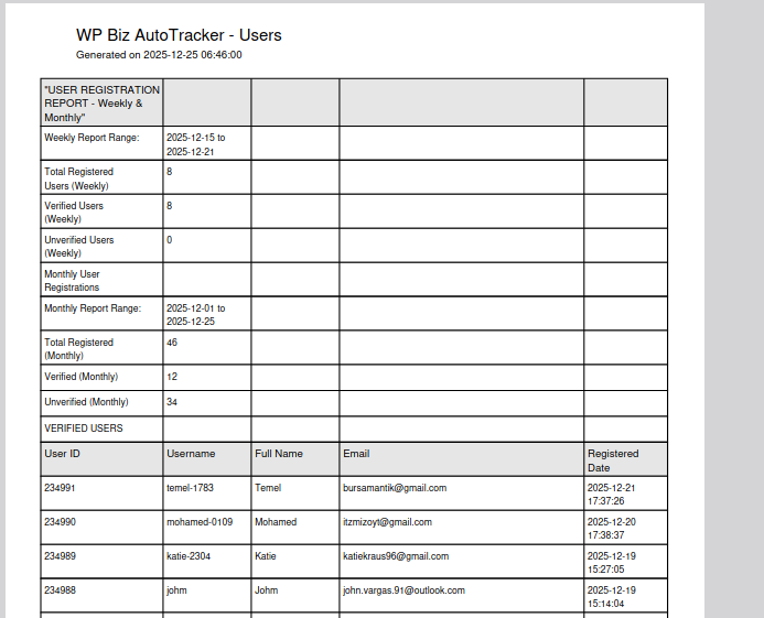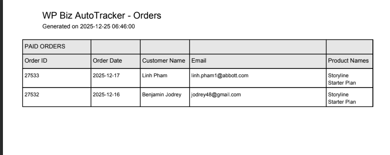 The WordPress Biz AutoTracker, site owners gain complete, automated visibility into their eCommerce and user activity performance—without spending hours pulling data manually. The plugin ensures you receive accurate, timely, and actionable insights that help you make smarter business decisions, and understand user behaviour better.